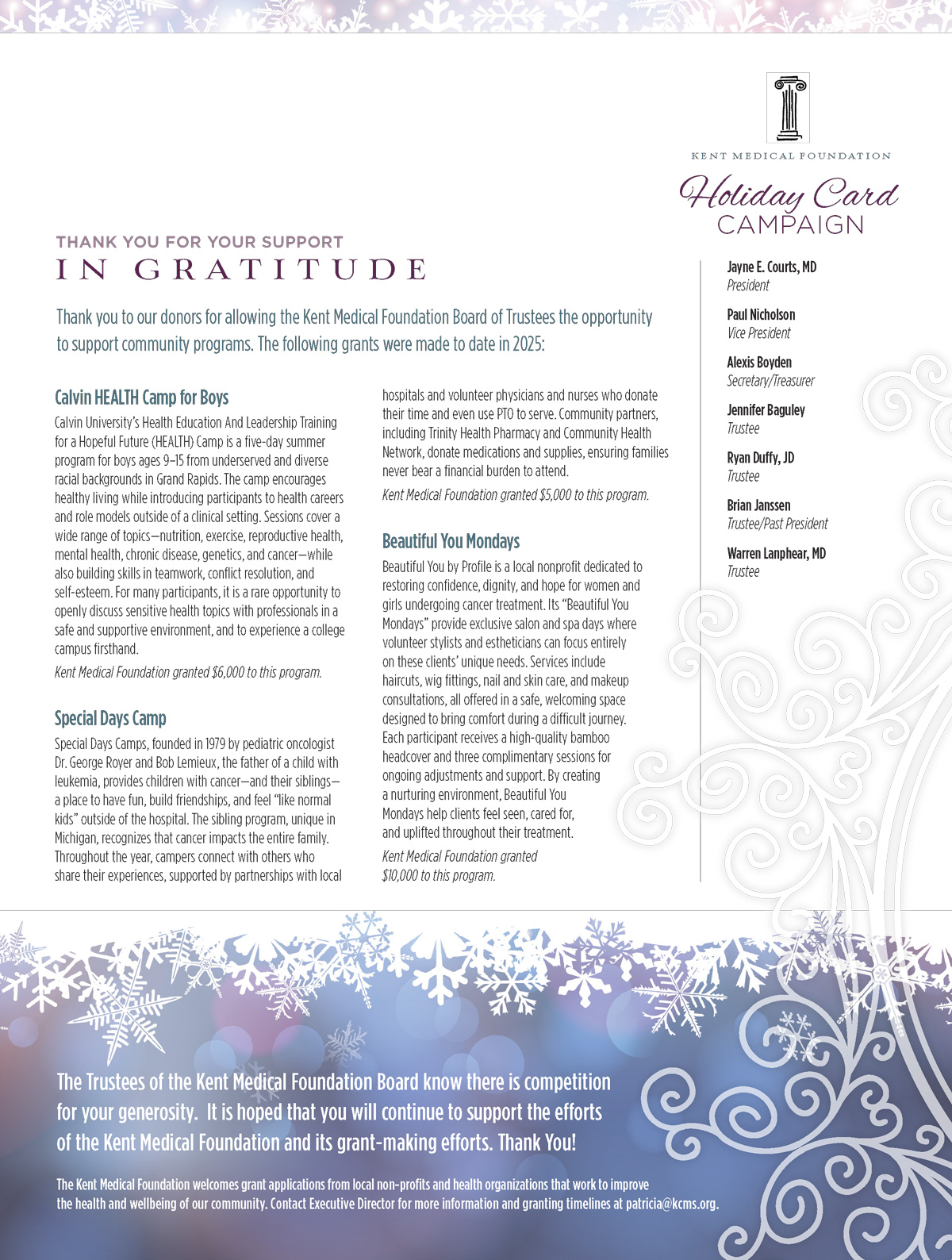 The Kent Medical Foundation (KMF) was founded in 1961 by the Kent County Medical Society.